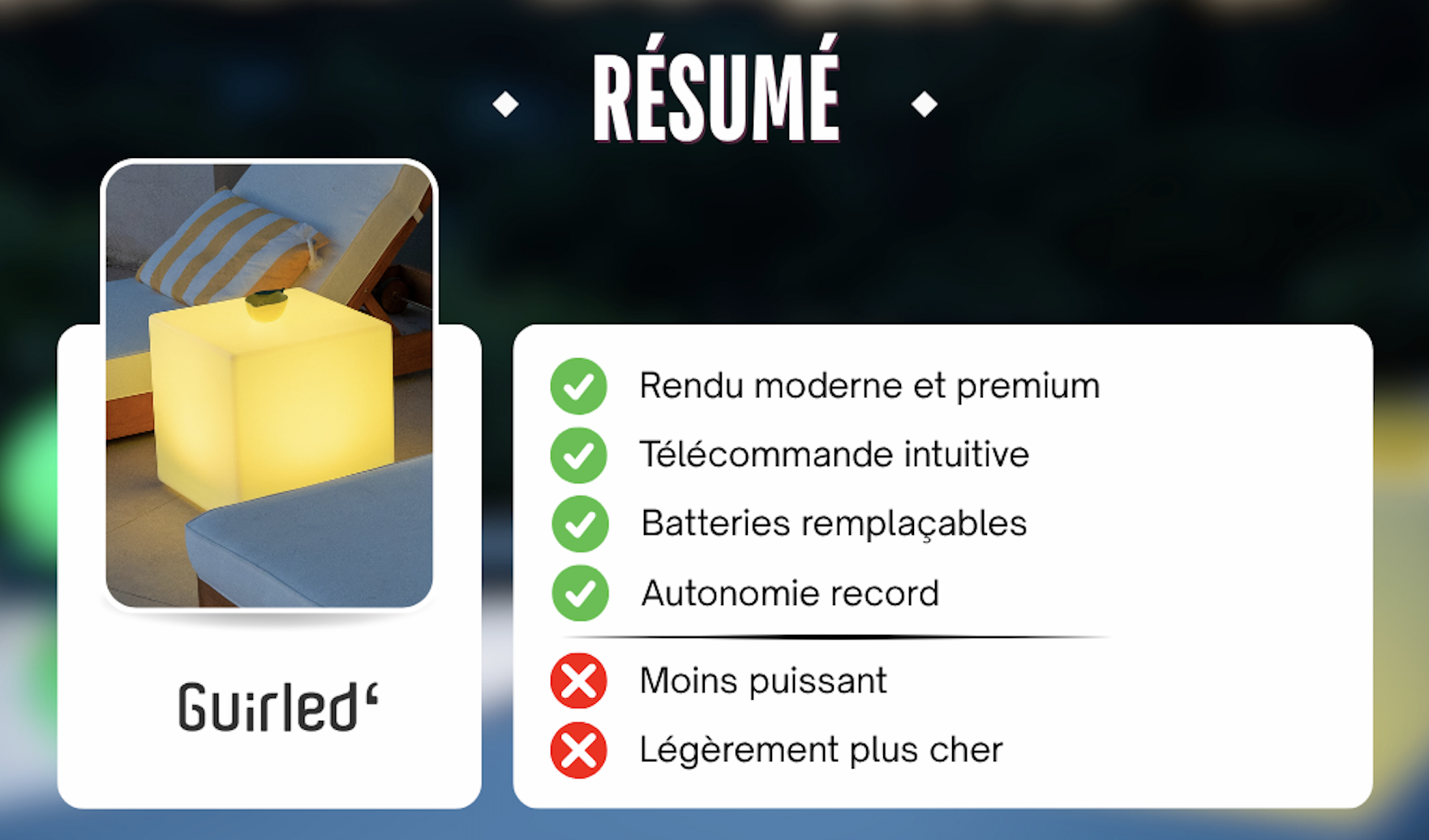 Guirled : großes Solarpanel unter wasserdichtem Plexiglas, austauschbare Batterien ♻️