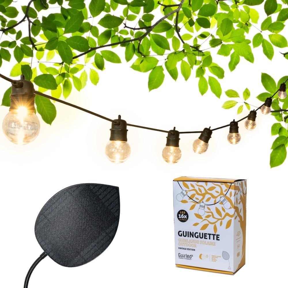 * Angekündigte maximale Leuchtdauer mit einer Guinguette Guirled-Lichterkette im Sommer, ohne Schattenbereiche. Die Leuchtdauer kann sich im Winter und je nach Sonneneinstrahlung verringern.