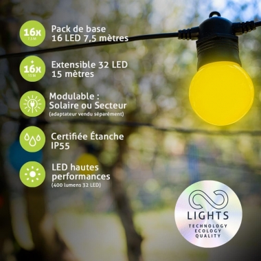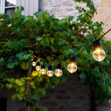 Mit dieser Vintage-Solarlichterkette entscheiden Sie sich für eine 100 % solarbetriebene Leuchte mit einer Länge von 15 Metern. Ideal für ein Retro-Ambiente in Ihrem Außenbereich (Garten, Terrasse) sowie auf privaten Campingplätzen (Bar, Restaurant). Die Guinguette mit transparenten Design-Glühbirnen sorgt für eine zeitlos warme Atmosphäre. Genießen Sie leuchtende Retro-Abende.