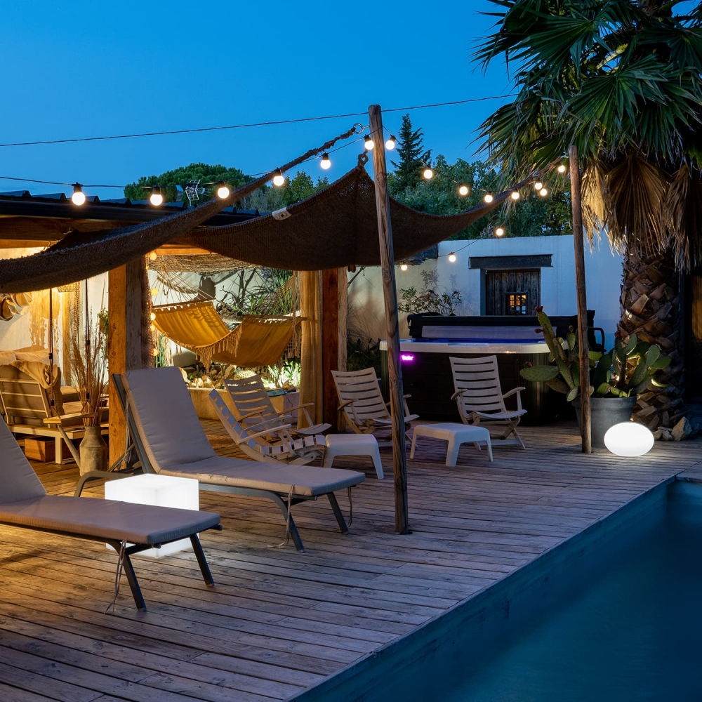 * Angekündigte maximale Leuchtdauer mit einer Guinguette Guirled-Lichterkette im Sommer, ohne Schattenbereiche. Die Leuchtdauer kann sich im Winter und je nach Sonneneinstrahlung verringern.