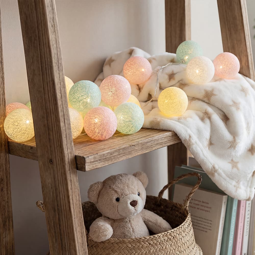 This ball garland Unicorn, in pastel colors, can be hung above your child's bed or crib to make their room a warm and relaxing place. The garland features a mix of pink and blue, which are perfect for a girl's or boy's room. The colors are so soft and comforting that they will help your child fall asleep faster than ever. We have colors suited to all desires, discover our complete collection now: indoor light garland.