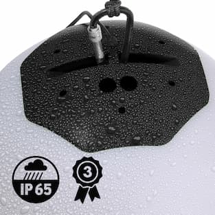 Our Solar and mains Sphere features high-intensity LEDs. A high-capacity Lithium-ion battery is integrated directly into the Sphere. When charging in the sun during the day, you must connect the panel to the Sphere. The 30 and 40 cm Sphere has a 4000 mAh battery (200 lumens) and the 50 and 65 cm has a 8000 mAh battery (400 lumens). Its autonomy is 8 hours in summer. During an evening, if you want to move the Sphere closer to a table, you can unplug it from the solar panel and move it. It will light up without any problem if it has been charged during the day. It is also possible to unplug the panel to then turn on the colored solar ball even if it is not completely dark. You have several functionality options regarding colors. You can choose automatic color scrolling. You have a multicolor palette scrolling before your eyes. Or choose a color predefined by yourself. There are 15 colors available. You can also choose not to set the Solar/mains Sphere to a color and leave it on white (warm white). Thanks to its cutting-edge technology and high-end quality, this Sphere can be controlled remotely by a remote control. There are 4 buttons on the remote, including the ON/OFF button and the others allowing you to test various color options. Thanks to the double diffusion (plastic dome diffusing x2), the lighting is homogeneous at 360° without shadow zones. The light diffusion is total. This is the result of two years of research and development by the Guirled teams. It is an outdoor light that is of course 100% waterproof IP55. Its waterproofing is guaranteed against all weather conditions. The luminous balls are part of the Infinity Lights label. A label that certifies the excellence of our products with high-quality materials. Quality, innovation, and technology are the key words.