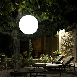 30 and 40 cm Spheres provide a soft ambient light (400 lumens), ideal for a terrace, balcony, or relaxation corner.