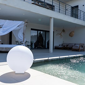 Thanks to the provided hanging accessories, you can choose to install your light in the trees of your garden. Suspended from a branch, the Sphere will be completely in harmony with the landscape and will sway with the wind. Another beautiful place is around a pool. Arranging this space with our LED solar sphere brings a cozy atmosphere. You can place it on the ground using the dedicated base which is sold separately. To add a cozy touch to your terrace, opt for the RGB Sphere which, depending on your color choices, can perfectly integrate into your current decor. You can then choose to hang or place your luminous sphere on the ground. The large outdoor solar/sector luminous sphere is indeed 100% portable. If you are looking for a solar garden ball from Leroy Merlin or a solar garden ball from Gifi, we offer you something better! The decorative solar and mains ball, which can be installed on terraces, pools, gardens, balconies, etc. It decorates and lights up your home in a festive, warm, and colorful way (accompanied by fairy lights, lanterns, spotlights, neon lights, candles).