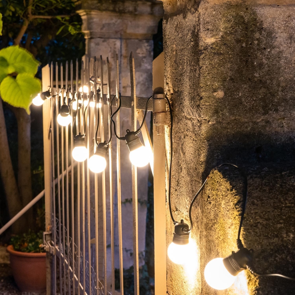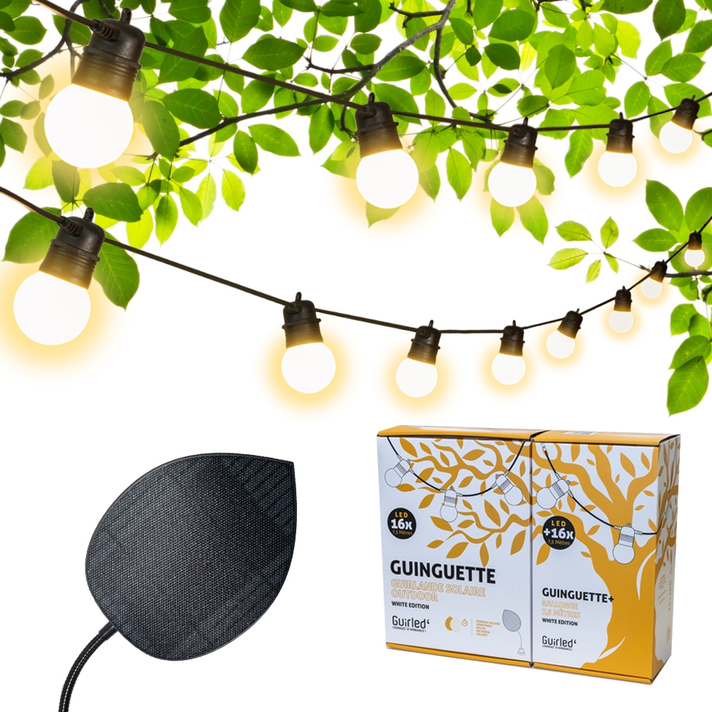 ❤️ GUIRLANDE LUMINEUSE GUINGUETTE - Ultra-résistante - Matériaux de qualité - Éclairage intense 400 lumens - 15 mètres 32 ampoules LED non remplaçables - Piquet et vis inclus - White Edition (blanc chaud)