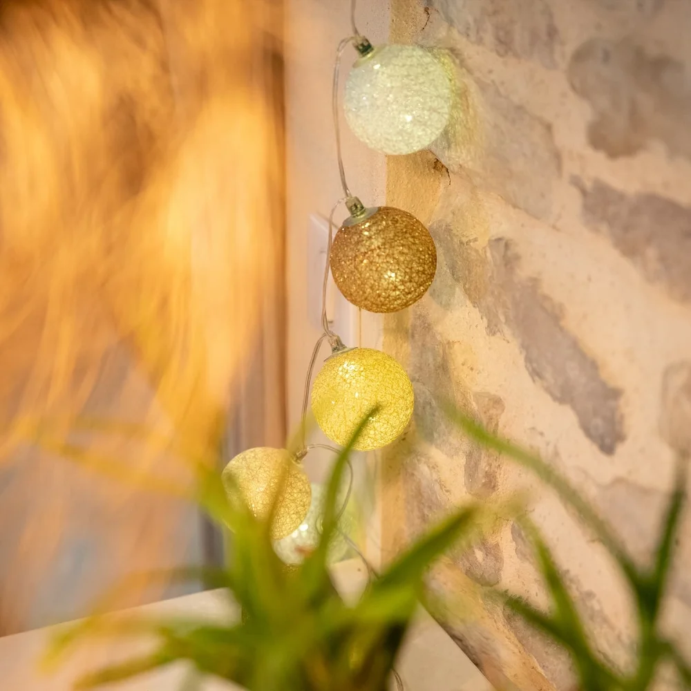 guirlande lumineuse boule coton or guirled