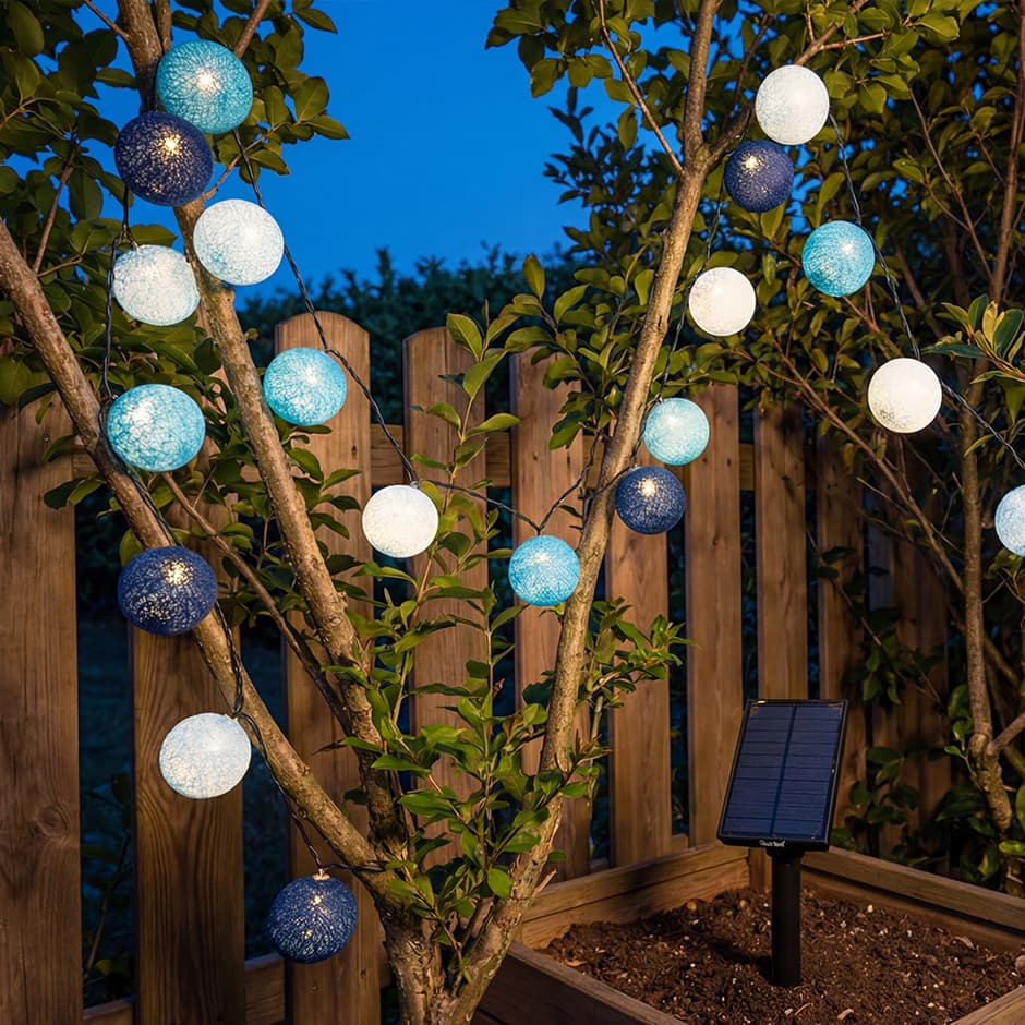 Une guirlande solaire qui inspire la tranquillité et vous permet de faire des rêves bleus, voici le modèle Altitude. Un luminaire solaire LED longue autonomie pour embellir vos extérieurs. Proche d'une piscine ou dans la végétation, à vous de lui trouver son plus bel emplacement. Ne passez pas à côté des autres couleurs : Guirlande boules lumineuse
