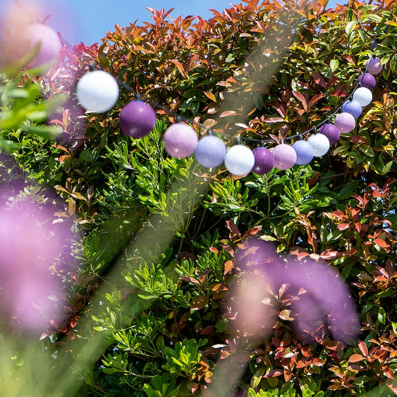 Questa ghirlanda luminosa da esterno rivela il suo lato goloso grazie al suo campionario di colori viola. Questa combinazione dà al tuo giardino un'atmosfera colorata in armonia con la natura. Di giorno come di notte, questo apparecchio LED solare abbaglia! Abbiamo molti colori, clicca sul seguente link: Ghirlanda a palline luminose
